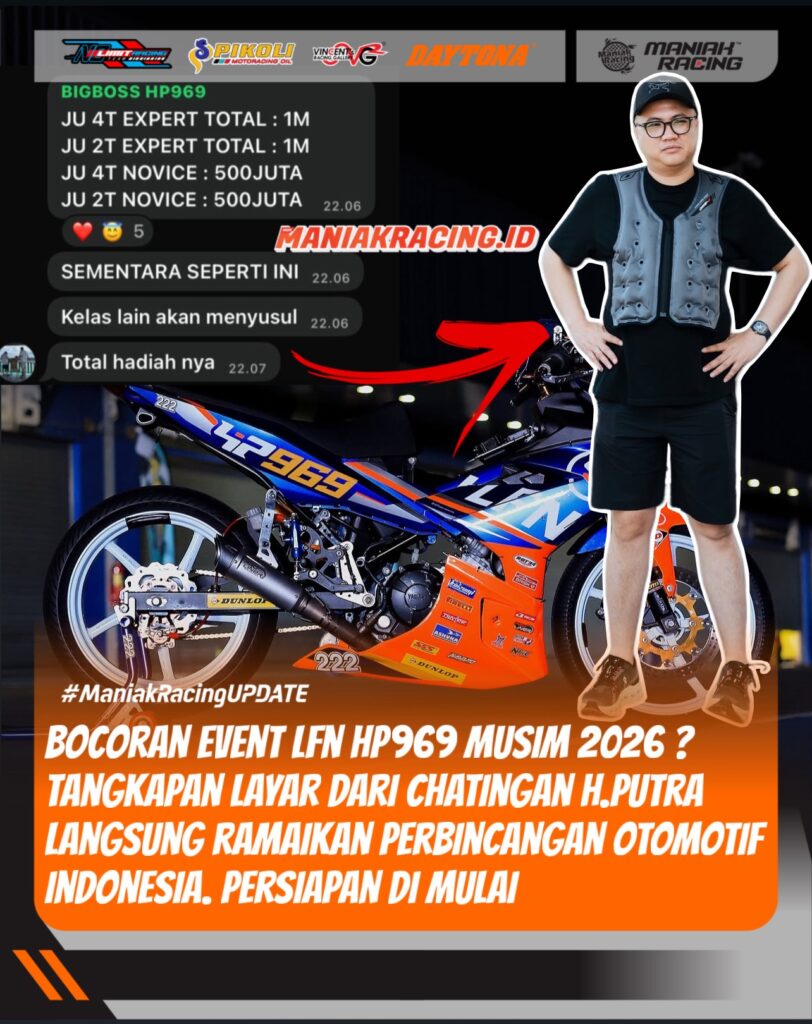 Lonjakan hadiah ini menegaskan keseriusan LFN HP969 dalam membangun ekosistem balap yang profesional, berkelanjutan, dan berpihak pada masa depan pembalap. Musim 2026 diprediksi akan menjadi magnet besar bagi tim-tim papan atas hingga tim privater , pembalap nasional, hingga talenta muda dari berbagai daerah.