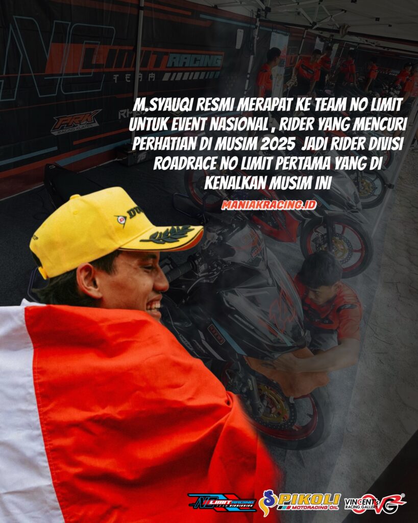 No Limit Racing Team memastikan mendatangkan M. Syauqi sebagai salah satu amunisi utama mereka. Pembalap bernomor start #70 tersebut dikenal sebagai pemuda berbakat yang di musim 2025 sukses menorehkan berbagai gelar juara umum, sehingga kehadirannya diyakini bakal menambah daya gedor tim asal Medan yang kini bermarkas di Klaten, Jawa Tengah.