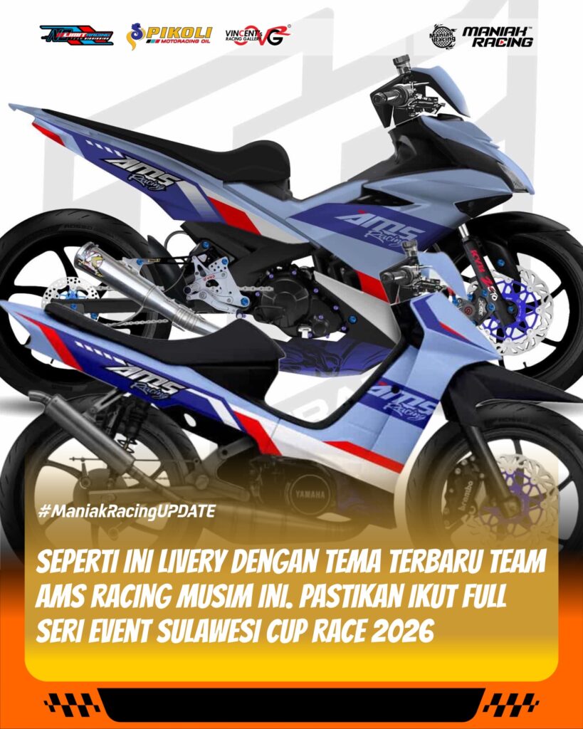 - Di kelas bebek 2T standar 125cc, Team AMS memberikan kepercayaan kepada mekanik lokal Sulawesi yang tengah naik daun, Misyu, yang dikenal sedang “on fire” dengan performa mesin kompetitif di lintasan.