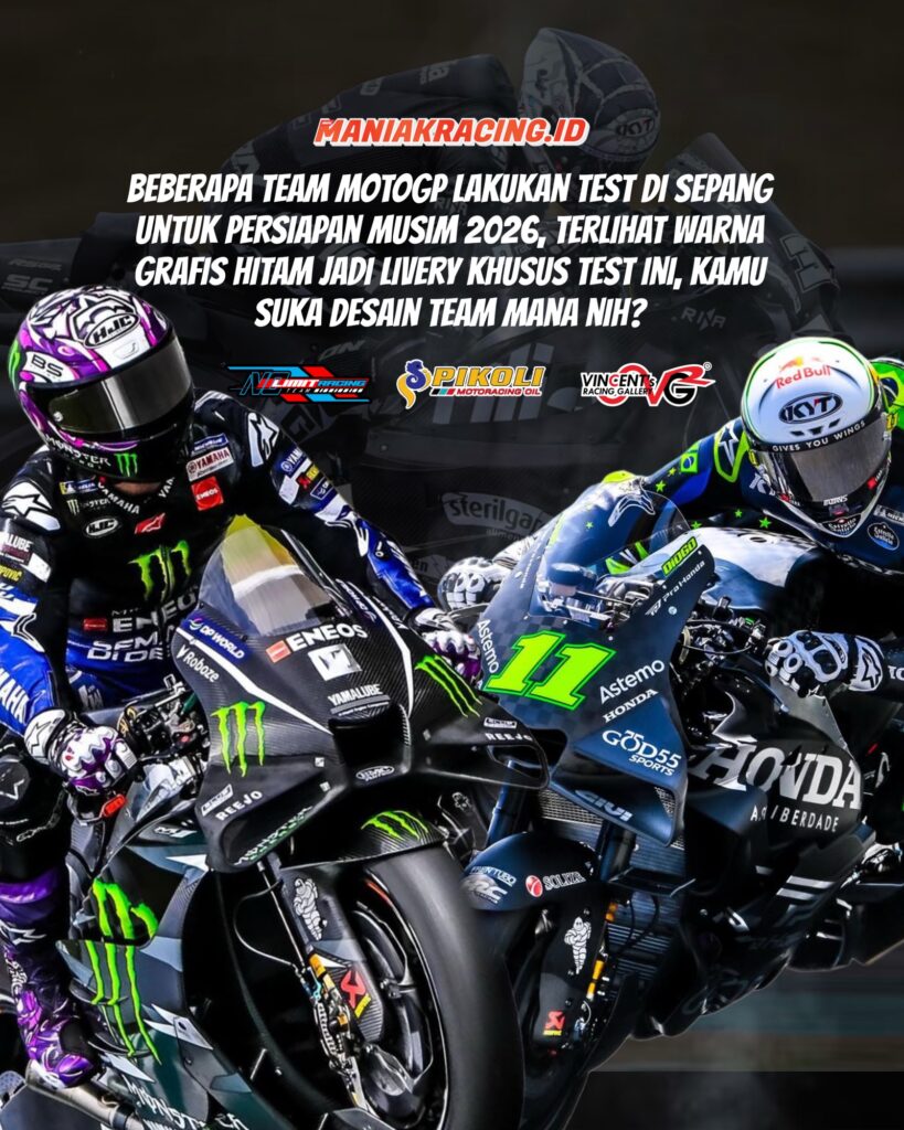 Livery hitam di tes pramusim MotoGP bukan soal gaya, melainkan strategi: menyembunyikan teknologi, fokus ke data, menunggu sponsor final, dan memudahkan proses pengembangan motor.