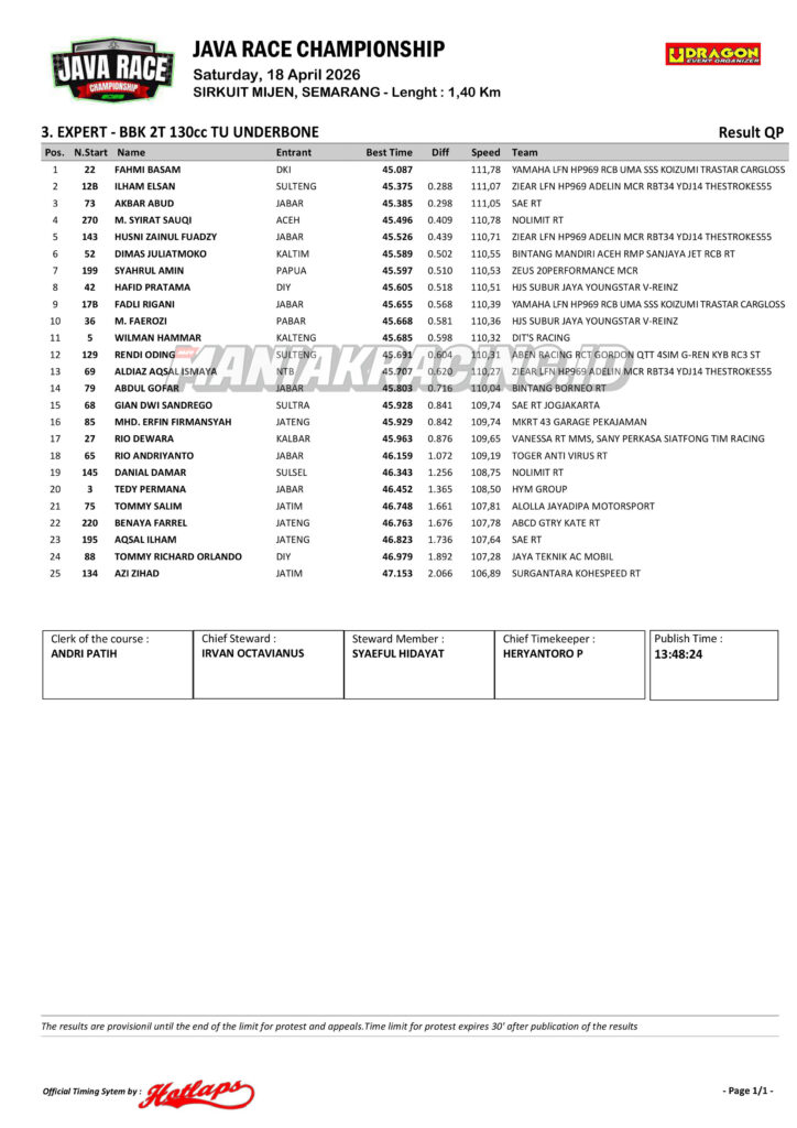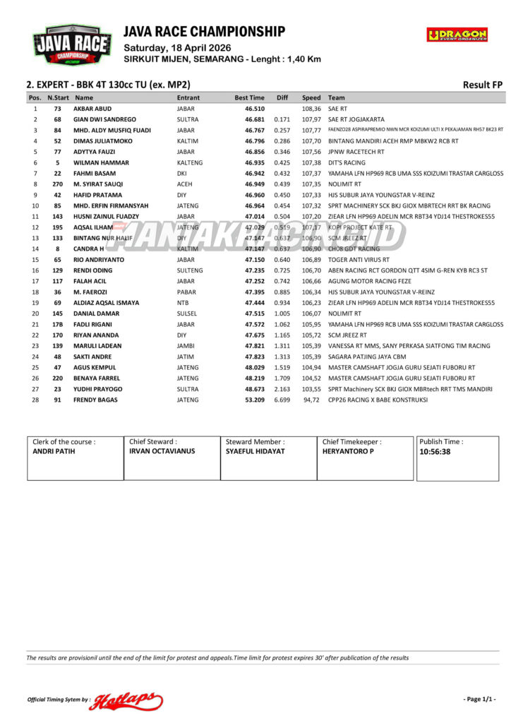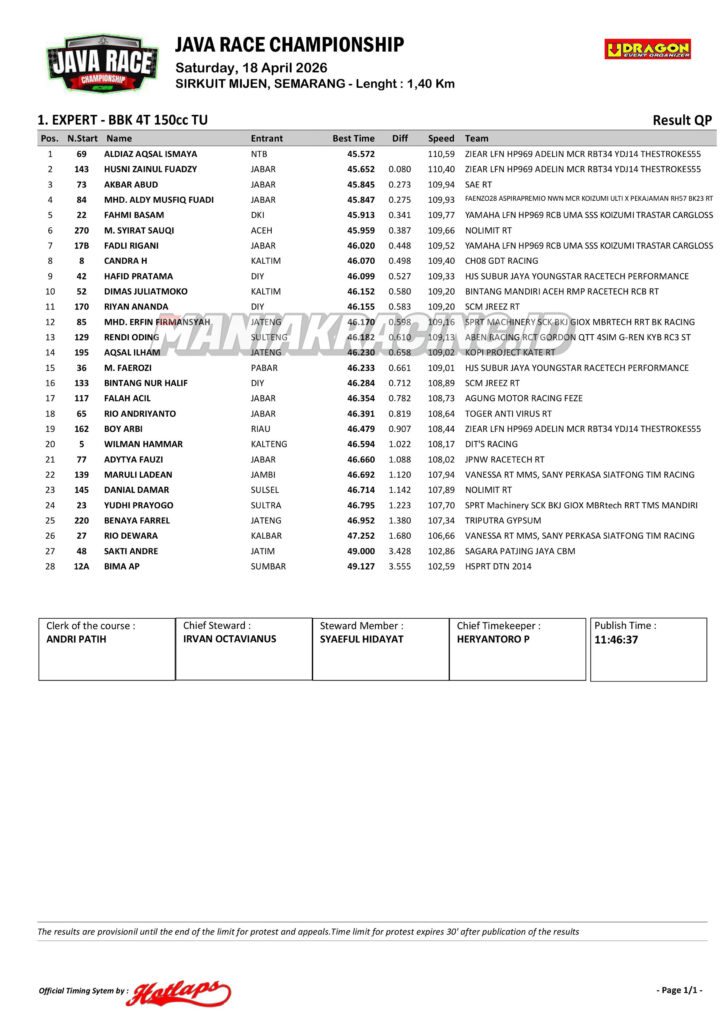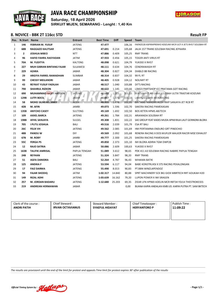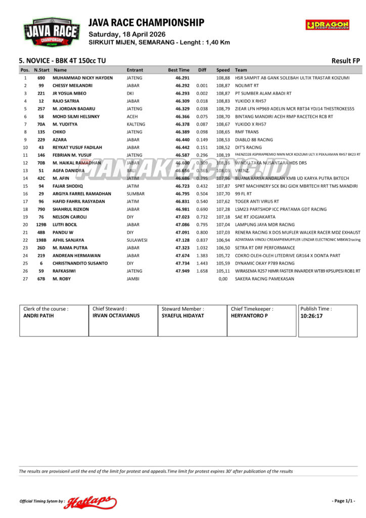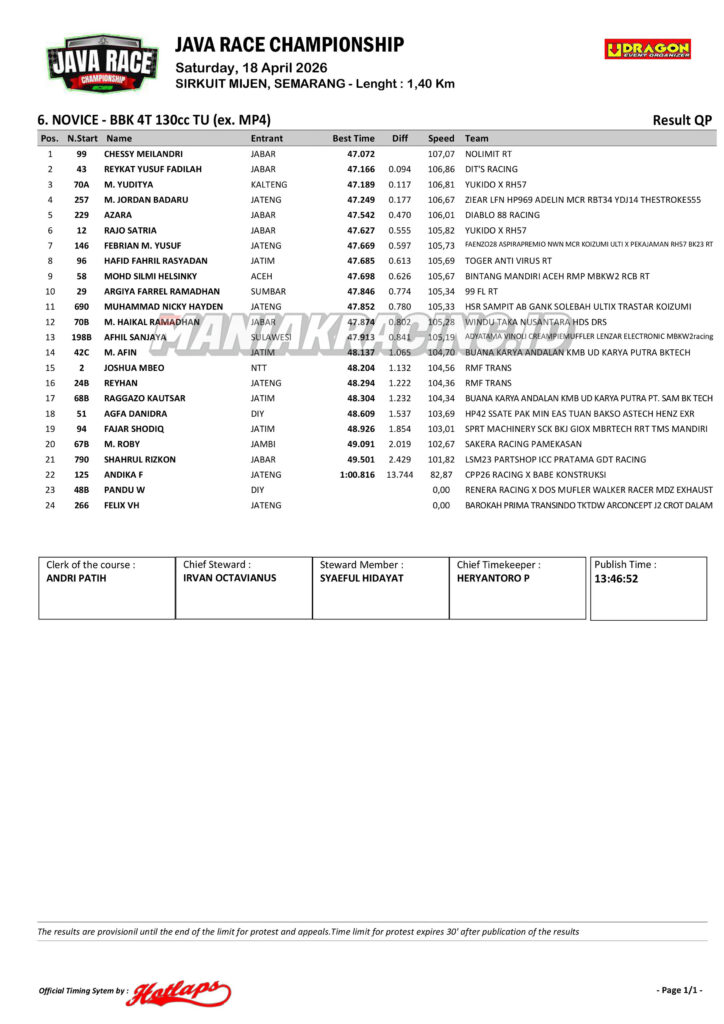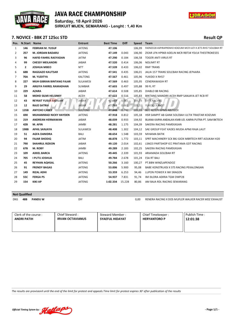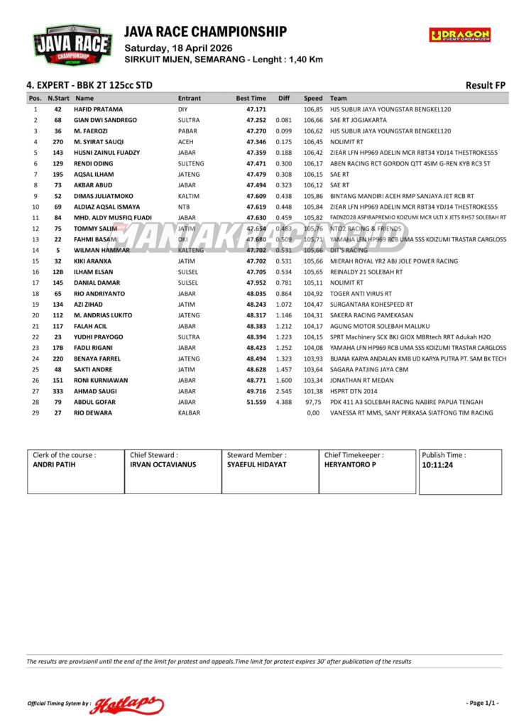 Roadrace Hasil Qtt Kelas Expert dan Novice Java Race Championship 2026 April 18, 2026 maniakracing.id 0 Comments roadrace