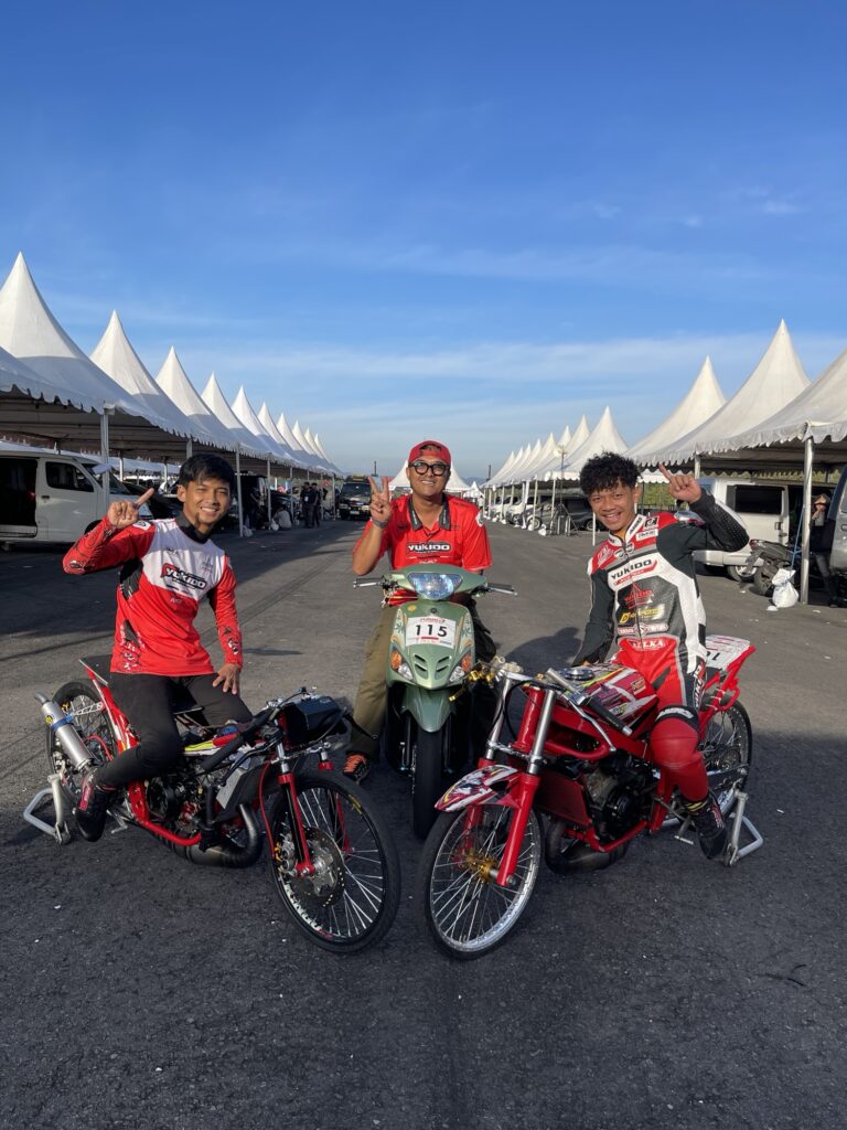 Event pertamax turbo drag fest 2025 seri jogja di hari sabtu 19 juli berjalan dengan seru , kejutan datang dari team yukido race team yang berhasil meraih juara 1 di kelas ninja tune up 155 dan ninja frame std 155 cc. Kami coba bertanya lebih dalam kepada sosok joki muda asal jakarta ini tentang apakah benar kalau motor ini bikinan nya dia ?