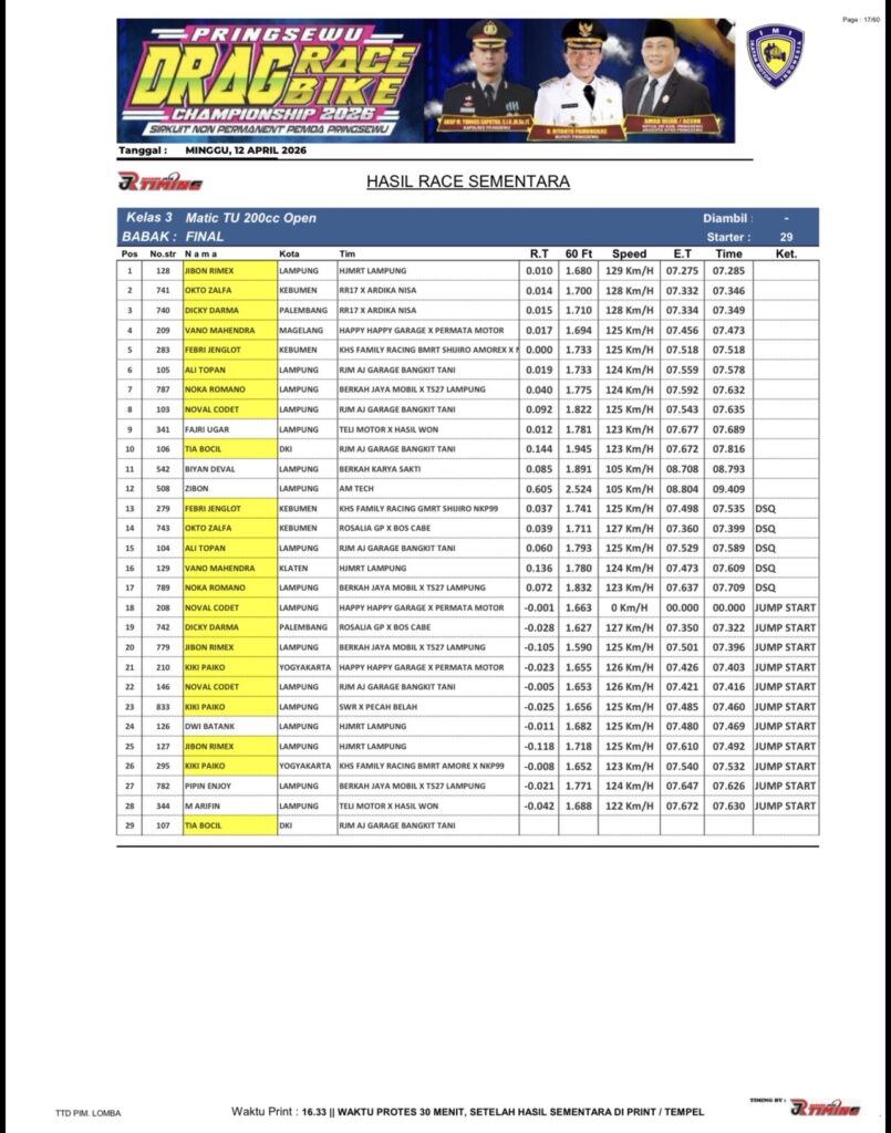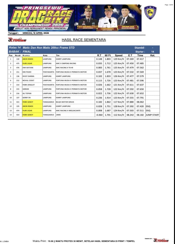 Kejutan Matic 200 HJMRT Lampung Kuat Sapu Bersih Dua Kelas Sekaligus Dengan Frame Std. Tuner masih 26 tahun?