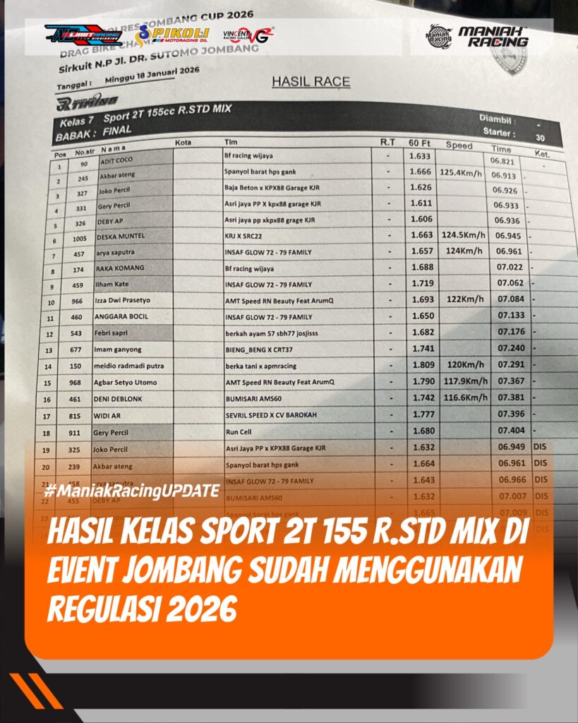 Pembuktian BBM Merah , Ninja Frame Std BF Racing Madura Wijaya Catat 6,821 Detik dengan Regulasi BBM 2026.