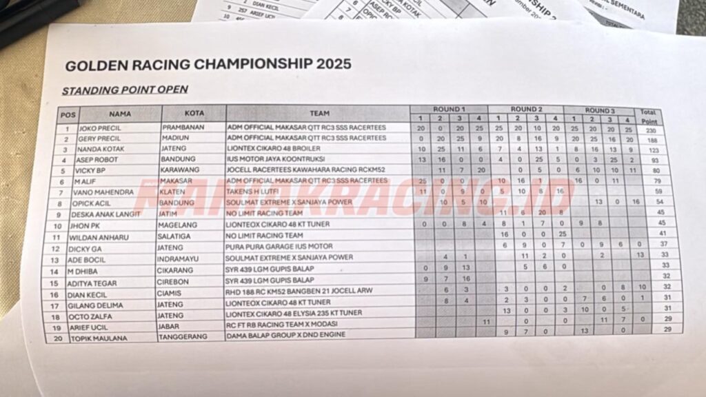 Gelaran GRC Meikarta 2025 resmi berakhir dengan kejutan besar dari dunia balap Tanah Air. Team ADM Official, tim asal Sulawesi yang dikenal dengan konsistensi dan kekuatan teknisnya sukses mengukir hasil baik dengan menyapu bersih posisi juara umum 1 dan 2 Full Series musim ini.