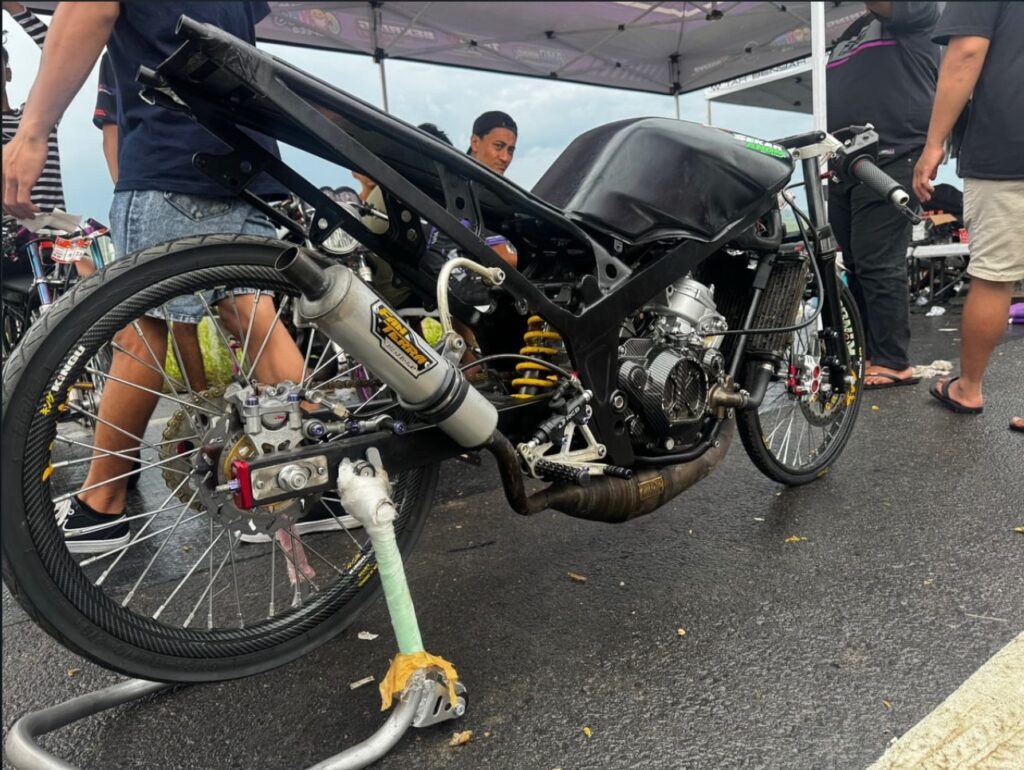 Ninja frame std baru dari team asal madura ini berhasil catatkan waktu 6.844 detik lewat Yudis Kurcaci . Catatan time fantastis ini didapatkan lewat motor garapan conks speed asal kota malang.